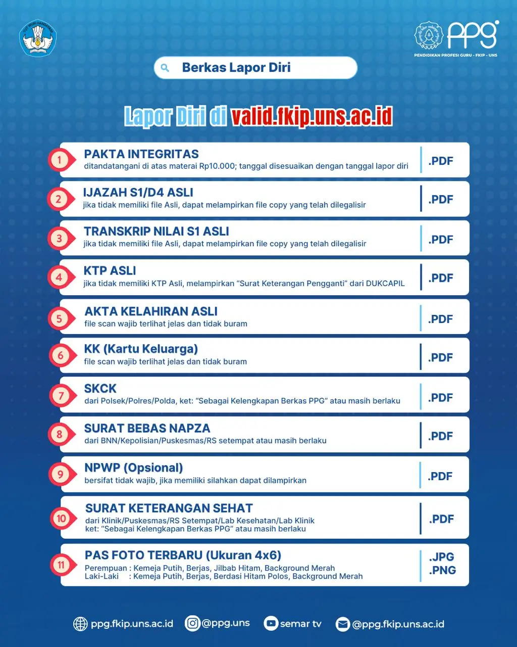 - Informasi resmi dapat diakses melalui laman web ppg.fkip.uns.ac.id dan instagram @ppg.uns